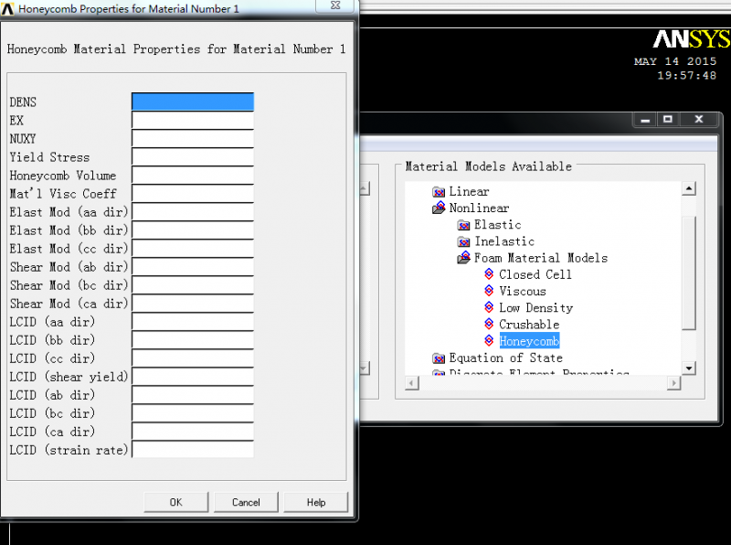 LS-DYNA中honeycomb材料参数怎么设置?