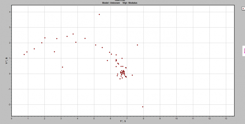 而该图的导纳图却呈现出半圆,如下图