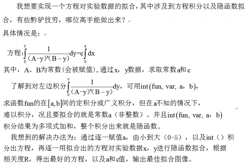 大家有没有方程积分以及隐函数拟合学的比较好的?有个积分,请高手帮忙积分出来。