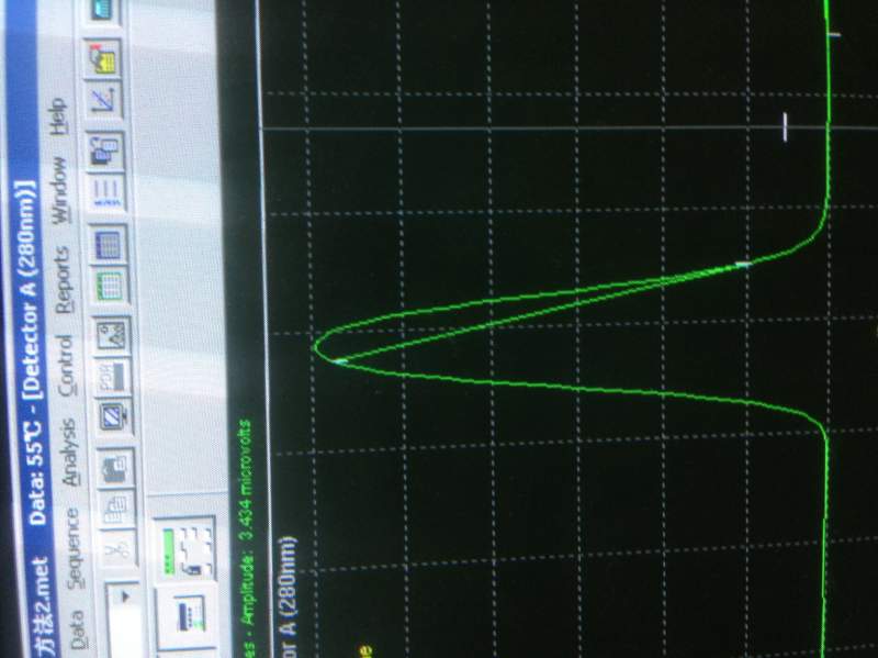 我用的液相是日本岛津的10AVP,工作站就是class-VP工作站,很简单没有太多的功能。积分的时候突然出现一个奇怪的现象,出的色谱图上有一条斜线,不知道这是什么问题。请高手指教。上下图![]() IMG_0924.JPG |