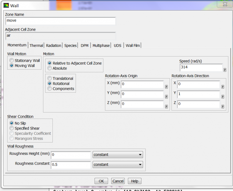 如图,大圆柱内掏空一个小圆柱,材料设置为空气。现在将小圆柱面上设置旋转速度314rad/s,剩下的面设置为静止壁面,为什么模拟出来的结果小圆柱面的速度不是w*r 呢?