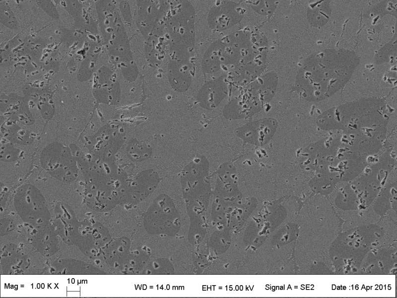 这是通过金属型铸造的Al-4wt%Ni-2wt%Mn铝合金,用凯勒试剂腐蚀15s后的SEM照片,不知道基体上哪来这么多腐蚀坑,而共晶区域却没有,搞不明白什么原因,请高手给予指导! A1-1-01.jpg |