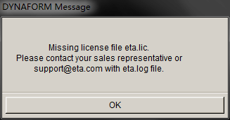初学小白,win7系统,每次运行mstep的时候都会提示missing license file eta.lic。然后就不能求解。我用的dynaform5.7.1和5.8.1两个版本。两个版本都不能用。查了好久方法实在是无奈了,求大神解决。 $R2KAFQE4PYU3L3D2OP{Q$7.png |