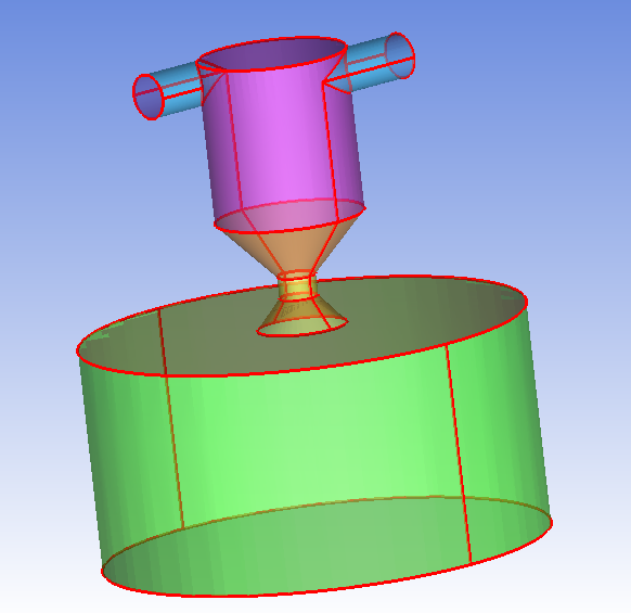 直接非结构化网格吧 其实画小点 也蛮好的 而且非结构化网格的失真比较低 一定要结构化的话 你可以找些文章 关于旋风除尘器网格划分的 (youtube上有) 其他地方都好办 主要就是你最上面的两个切向口 你得往外拉一个网格面 但是实际上这种结构网格在研究中还是比较失真的 你可以去找找SCI的有关论文 关于旋风除尘器的 有一个专门是说结构化网格不同划分对于网格影响的 实在不行就直接非结构吧 结构化网格划分还得对流场的预计要准确才行 |