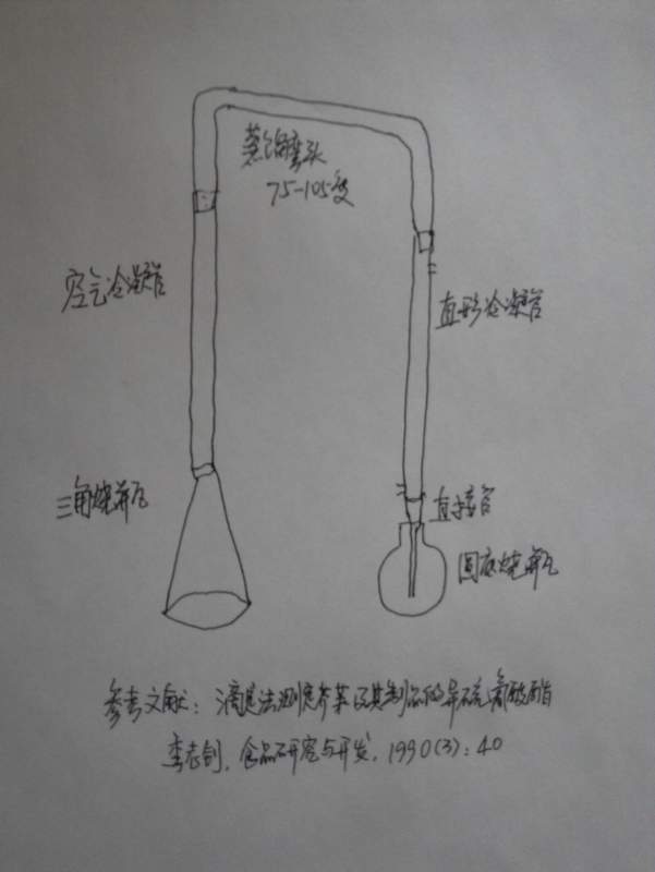 我们实验室没有GC,但又必须开展异硫氰酸酯检测,只能用银量法,但国标中的装置在本地无法配齐,如果可以用其它装置,烦请传图,谢谢!