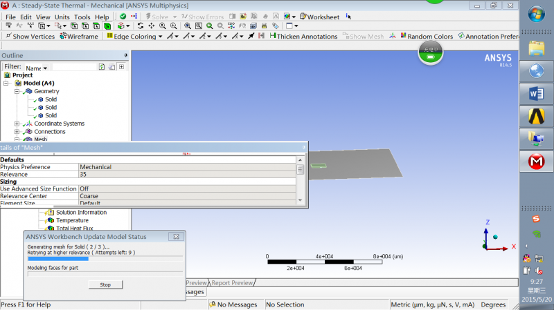 网格划分用的时间很久,而且最后一般是失败,The meshing process ran out of memory.,截图在下面,求解答