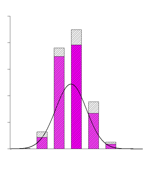 各位虫友,如何对堆叠柱状图中的斜线填充区域和紫色填充区域分别进行曲线拟合?多谢了!