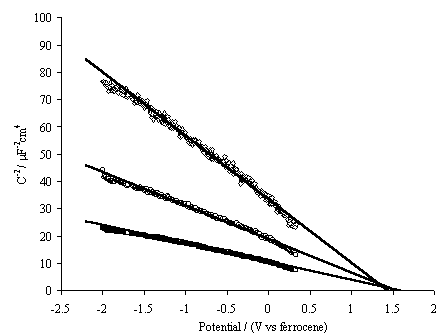你给出的两图都属于典型的M-S曲线,很多n-type 半导体的M-S图与第一图很相似的,当载流子浓度不同是出现你第一图的情况也属正常。不过,你还需要使用更高频率,比如5KHz, 10KHz测试看看曲线之间的差异。原则上,只有当两个频率下的M-S曲线无明显变化时的频率才是最合适的,显然,第一图的样品,如果采用5kHz,8kHz, 10KHz等时的曲线与现在的低频曲线还有明显的差别。 |
