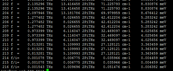 最近看到有人的帖子说虚频的大小在0.1THz内的都是可以接受的?不知道这个观点对不对啊? 我最近计算了一个类石墨烯体系,grep "cm-1"之后可以看到有3个虚频(见下图),我已经用了比较大的收敛标准了,请问这个虚频是不是可以忽略掉? |
