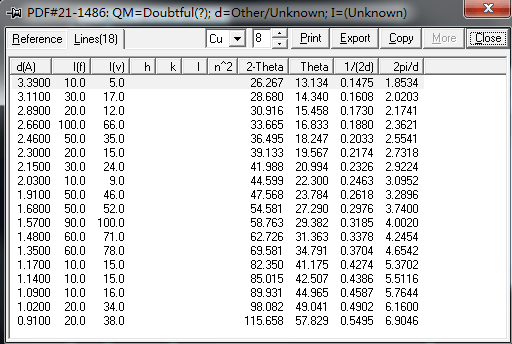 我这标准卡片没有晶面指标 但是测试的样品应该能看到晶面指标 你如果有侧好的数据 上传一下 我看看行不行