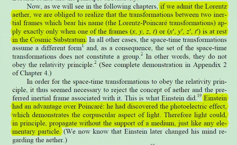 Originally posted by 华丽的飘过 at 2015-05-22 08:21:03: 你有一个帖子提示: 华丽的飘过: 反相对论没有什么不可以,只要有基础物理知识 <font color=gray>2015-05-22 08:21:03</font> 在承认相对论的原理的前提下,相对论是反不了的。质疑相对论免不了要质疑它的物理基础,例如是否存在绝对惯性系等。也不能乱质疑,需要寻找实验或者观测的支持,还必须在新理论的基础上解释原版相对论曾经正确解释过的物理现象。如此才能不被人忽视,这样的质疑才有点意义。 所在主题: [url=viewthread.php?tid=8959936&pid=1#pid1]看看高手是如何质疑狭义相对论 |