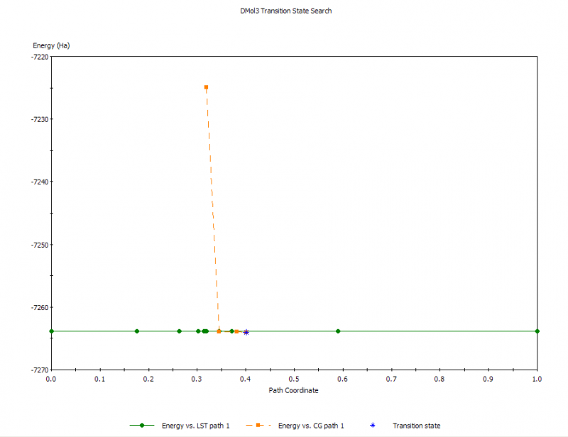 我用Dmol3版块做过渡态的搜索,一直出现不了曲线,我不知道是我参数设置的问题还是结构的问题,我用同样的参数搜索类似结构的过渡态就搜索出来了,可最近一直搜索不出来,不知道问什么,请大家帮帮我,以下是曲线图,本来应该出现第二个图那样