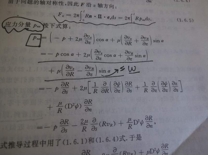 在书上看到一个轴对称stokes流中物体阻力的一个求解方法。对于Fz后面的矢量n和应力张量点乘再和e方向的基矢量点乘的含义不理解啊,这里pnz是指什么意思?? 是指物体表面的切向应力么? IMG_20150521_111241.jpg |