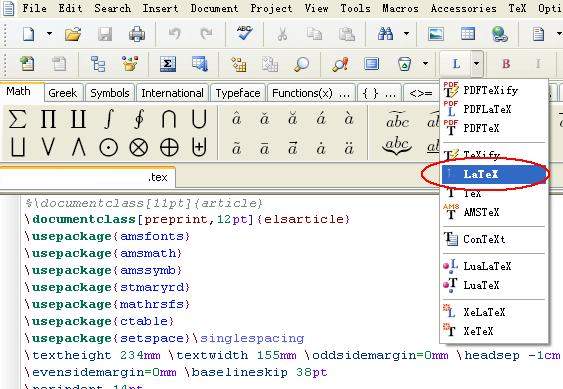 一般是用Latex 编译哦,按钮上显示为L 。 bibtex是用来编译参考文献的。