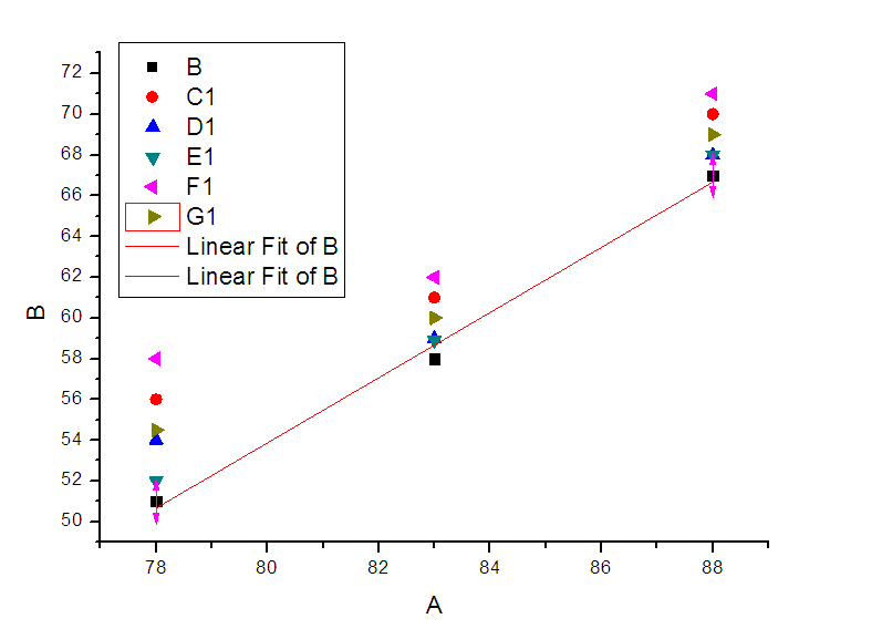 我想用下图的数据模拟出一条曲线,但是我画出来之后总是显示用数据B列模拟的,但是我想用图中所有点模拟出一条曲线,求指导。