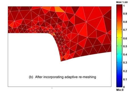 各位大神,在COMSOL中如何进行移动网格(ALE)设置,将图1中的结果变成图2?