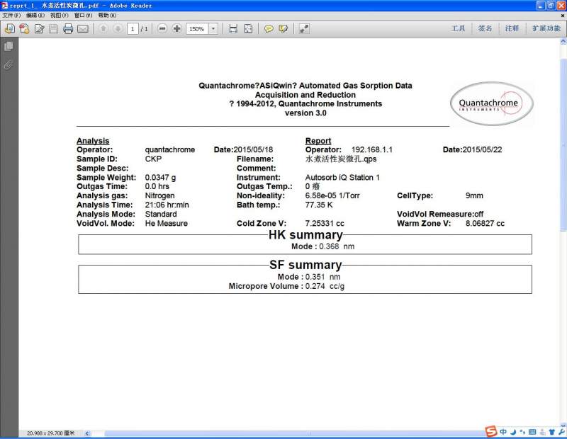 使用SF及HK方法对活性炭进行了孔径分析,发现都出现了两个峰,不知道大家做的也是这样。另外,原始吸附脱附图中,吸附线和脱附线并没有闭合,按照设定脱附线应该是33个点,现在就十几个点,求大神分析下时咋回事。仪器时康塔的,都是用的软件自带的方法做的。![]() ![]() Raw Data.JPG Summary.JPG HK method.JPG SF method.JPG |