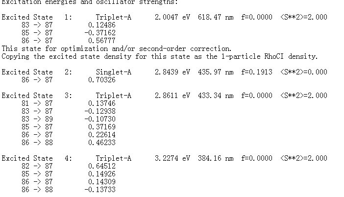 高斯TD-DFT计算能量后,怎样知道轨道跃迁的百分比?(就是附1里面最后一列的百分比) 已有1人参与