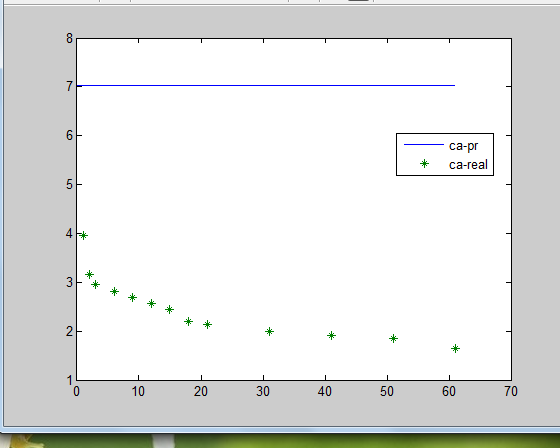 plot(t,x(:,1),t,yexp(:,2),'*');legend('ca-pr','ca-real')
