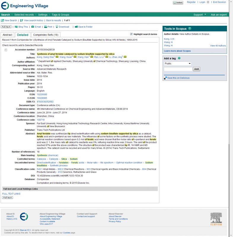 2.Accession number: 20150300428539