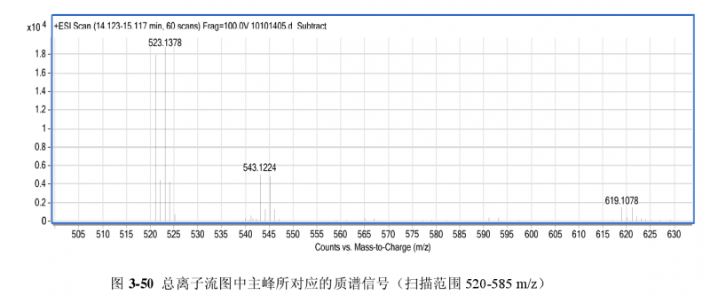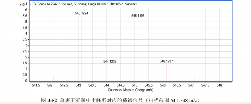 含溴化合物的同位素丰度比差不多是1:1,也就是M:M+2=1:1, 你图里的521和523差不多1:1