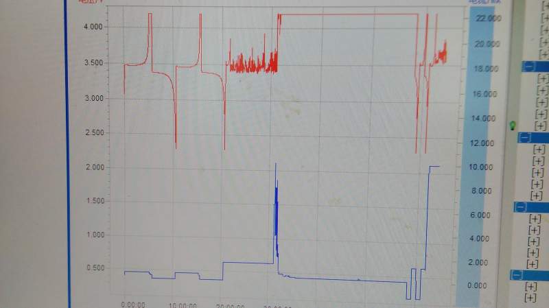 刚开始出现电压异常时电流正常,也就是表明电池组装或者电极片有问题。充电电流也发生明显异常变化,恒流源不应会发生变化的,此时异常原因可能恒流源也有点问题。