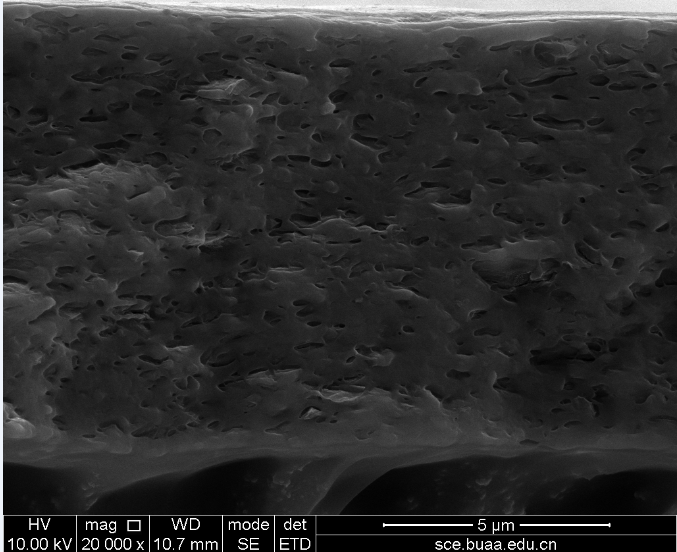将氧化石墨烯0.5wt%置于10mlDMF中,超声0.5h,再将1gPVDF在60℃下溶于上述混合液,搅拌0.5h,均匀后,调整涂膜机的基板板温度80℃,涂膜,几分钟后,去下,断面SEM测试,发现,,膜断面有很多孔洞,怎么回事? 1.png 2.png 3.png |