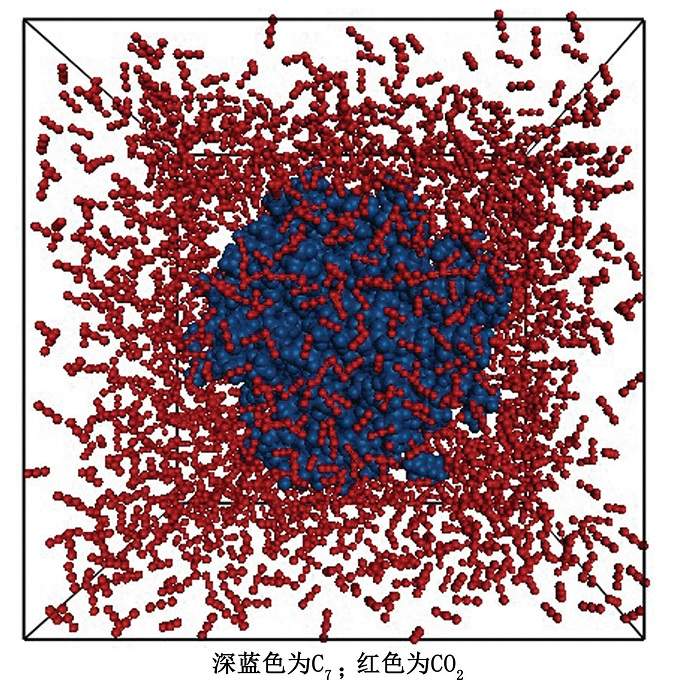 文献中的建模方法如下所述。请问各位高手,用烷烃油滴取代盒子中心球形区域内的CO2分子是怎么做到的?如能解惑,不胜感激!