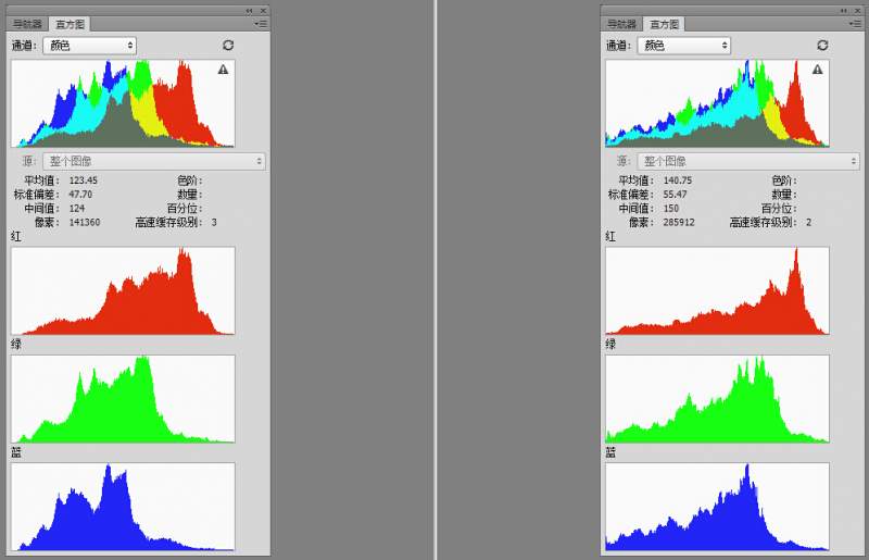 如图所示,原图的直方图为左图,右图为目标图像,这中间可能是由于对原图进行了什么操作呢?求有经验人士发表意见。