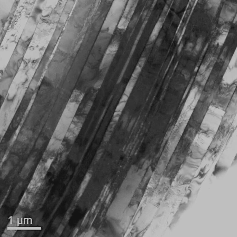 应该是twins 对于这种材料容易形成变形twins 做个选区颜色看下花样就知道了