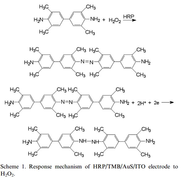 哪位大神知道辣根过氧化物酶(HRP)催化氧化四甲基联苯胺的氧化产物啊?想要最原始的文献,我查到的竟然产物不一样,不知道那一个对,有谁知道?请教