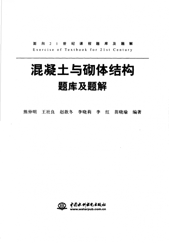 | 混凝土与砌体结构题库及题解 熊仲明 王社良 编写老师是西安建筑科技大学的 中国水利水电出版社PDF |