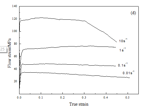 回复是再结晶的前期阶段!发生再结晶一般之前都有回复。从图中可看出应变率为10的曲线都有从最高点明显往下降的的现象…是典型的再结晶现象。再结晶的软化效应超过了塑性强化…所以应力降低!其他曲线可看成是回复!回复的软化能力较弱…基本与变形强化持平