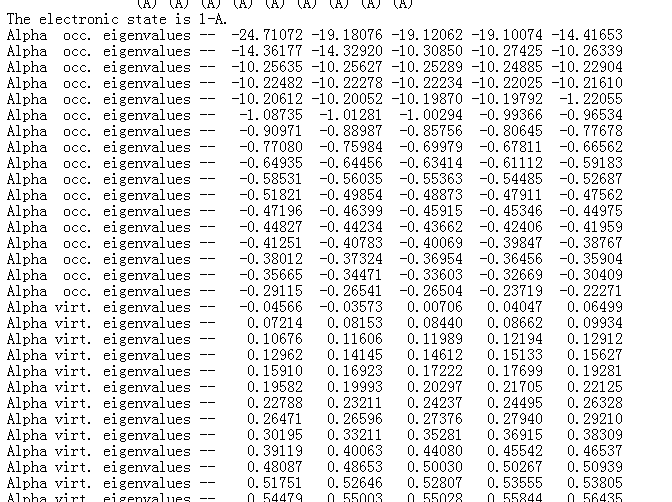 occ那行最后一个数是LUMO,virt那行第一个数是HOMO,别问我怎么知道的,猜的,坐等大神