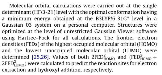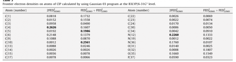 运用高斯03版优化了一个分子,然后得到了一个txt的结果,但我不知道怎么找出每个原子所对应的 The frontier electron densities (FEDs) of the highest occupied molecular orbital (HOMO) and the lowest unoccupied molecular orbital (LUMO) ,请各位大神帮忙~~~