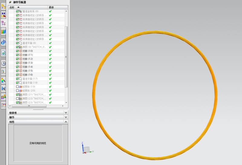 试试看:每次选择一根钢丝进行扫掠,比较容易查找问题。