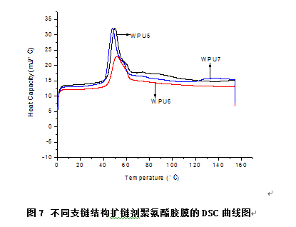 WPU5 用的扩链剂是1,2-丙二醇,WPU6是新戊二醇,WPU7是三羟甲基丙烷,探究的是不同支链结构对水性聚氨酯结晶性能的影响。求会的人帮忙分析一下,不胜感激