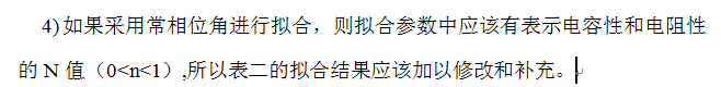 如果采用常相位角进行拟合,则拟合参数中应该有表示电容性和电阻性的N值(0<n<1) 这是审稿人给的意见,我查了下这个n表示“弥散指数”也叫经验指数,我用的是Zview拟合的,请问如何求出这个n呢? 图为我用zview拟合出来的数据还有审稿人的要求。 万分感谢! 11.png 1.png [ Last edited by luru1987 on 2015-6-2 at 16:49 ] |