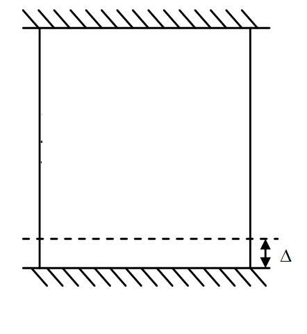 小弟有一事不明,如图所示,线弹性体两端固定,一个固定端发生位移△,书上说外力做功为0. 但是没有力的作用怎么会发生位移啊??而且线弹性体变形会储存应变能,这部分能量是哪儿来的啊???跪求解答啊!!