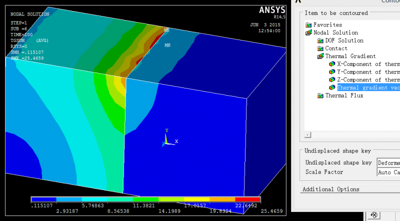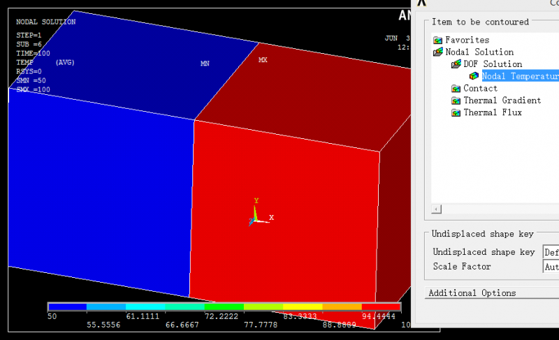 在两个体之间的面 添加了接触面 两个物体设置了不同的材料属性 solid70单元 之后两个物体上表面分别加了50和100度 从nodal temperature中没看出有热传导效果 但是thermal gradient vector能看出来 错误出在哪里啊 BaiduShurufa_2015-6-3_12-53-55.png BaiduShurufa_2015-6-3_12-54-8.png |