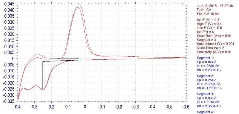 请教一下为什么做电容器的循环伏安测试时,当扫描倍率在20mv就出现两条曲线?