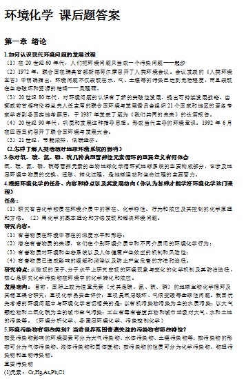 【课后习题】803环境化学(山东大学考研专业课) 课后题答案、名词解释、补充知识点