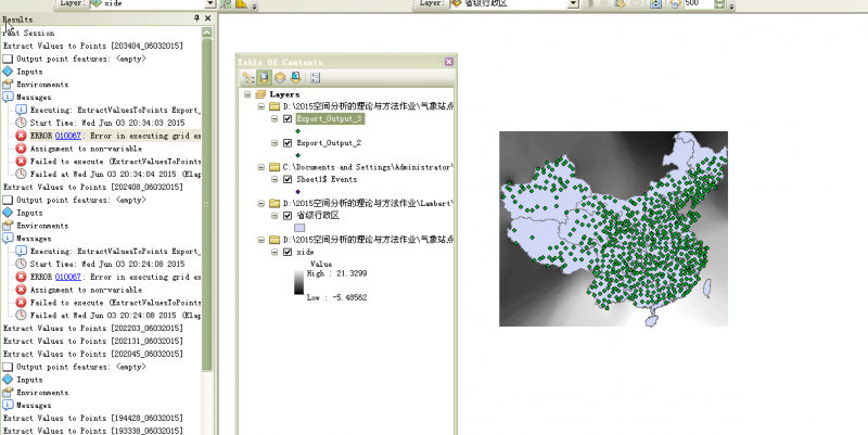 急急急!!!请问在ARCGIS中做气温插值提取插值气温值时extract values to points 出现010067 error in excutiing grid expression 错误?还请各位给予指导,非常感谢!!!! 1.png |