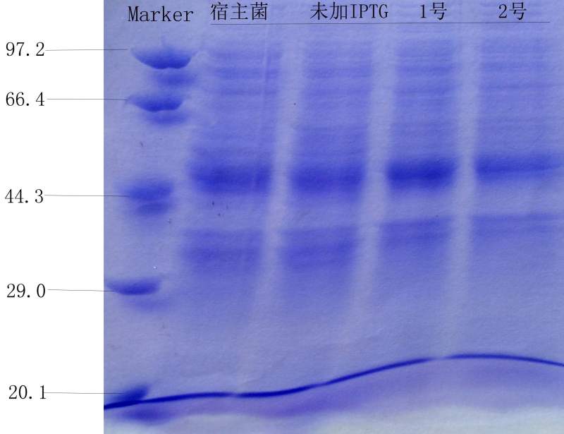 最近几个月都在做一个蛋白酶,可是我现在真的不知道有没有表达啊,图一是我做的有对照的实验,目的蛋白50kd,但是宿主菌和未加IPTG菌液单用也有条带,也是在目的条带附近,疯了现在。