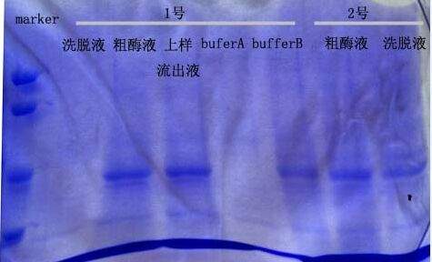 图2是我昨天刚刚做的蛋白电泳,菌液1号和2号,洗脱液是最重的洗脱buffer,是通过镍柱纯化的方式纯化的,1号洗脱液没有洗出来东西,但是2号却洗出来了,我怀疑一号菌液用的镍柱不好用了,可是这次蛋白电泳条带却小于目的条带,总之都是问题,求哪位大神帮帮我,做了好久了,一直没有结果。