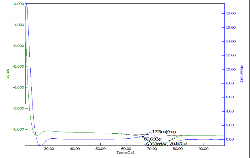这是送检完别人返回来的结果,同一个样品的DSC和DDSC曲线,没有DSC自带软件来分析