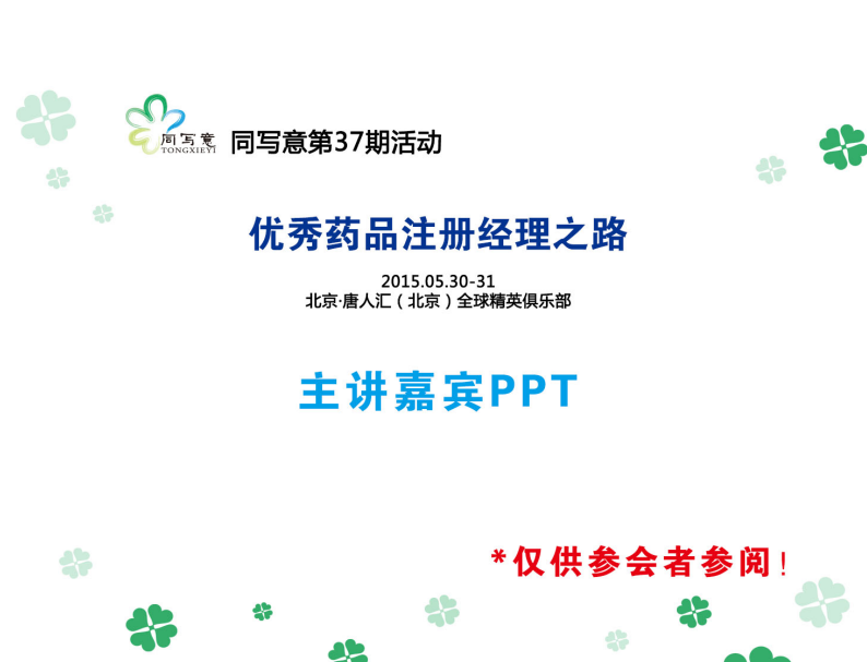 2015.5北京•唐人汇(北京)全球精英俱乐部—优秀药品注册经理之路 2015.5.30李慧芬—我做药品注册现场核查这些年 2015.5.30杜涛—FDA的新药审评程序和应对的申报策略 A.png 5.png 5-.png 6.png 6-.png |