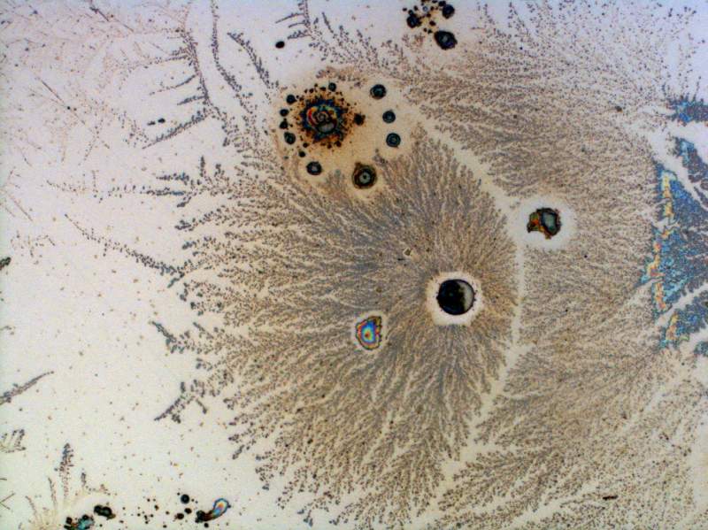 用NaCl溶液模拟海洋大气腐蚀,我知道硝酸酒精,可以看金相,但是现在出现的这种现象应该如何解释呢
