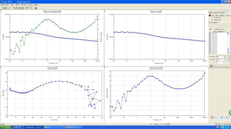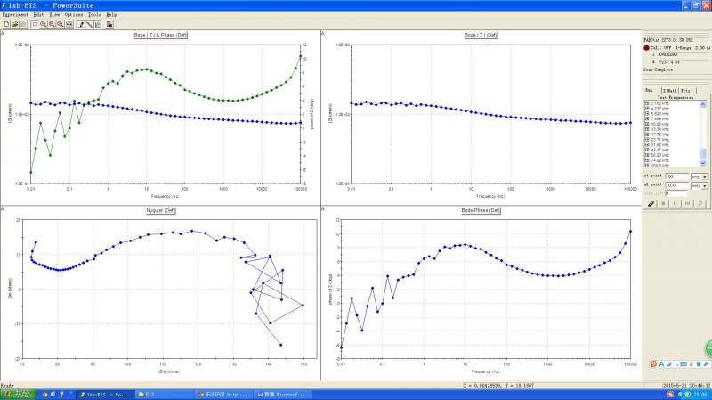 材料是16MN钢 电解质是不同湿度的土壤,这个是湿度为70%的土壤的EIS 图中的EIS低频区就开始出现乱点 所加的电压是-800——(-1600)基本是从-1000 开始低频区就开始发散了~不知道为什么,低频区有时总是去第四象限。请求高手指导~ 图片1.jpg 图片2.jpg 图片3.jpg |