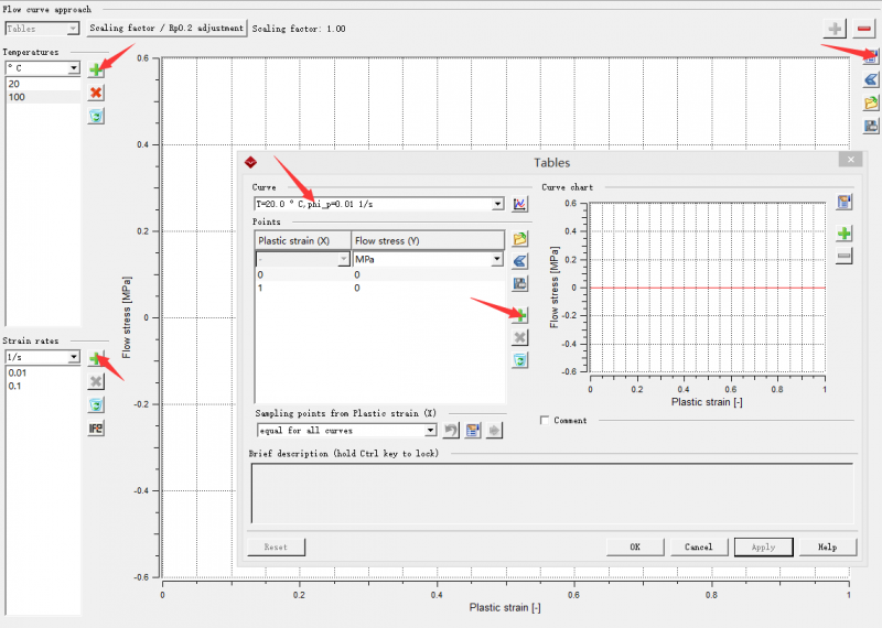 添加需要的温度,应变速率,点击右侧按钮对每条曲线进行定义